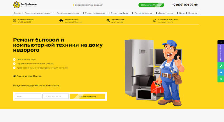 Готовый сайт «Ремонт бытовой техники». Стоимость — 7 000 руб.