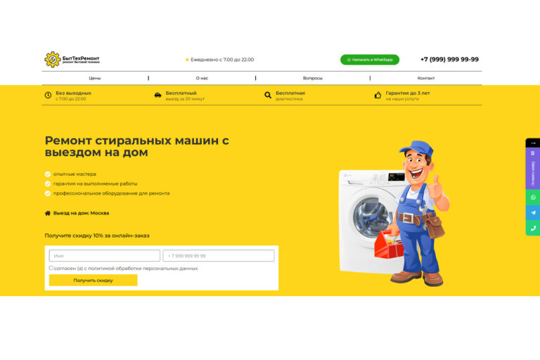 Готовый сайт «Ремонт стиральных машин». Стоимость —3 000 руб.