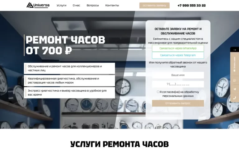 Готовый сайт «Ремонт часов». Стоимость — 3 000 руб.